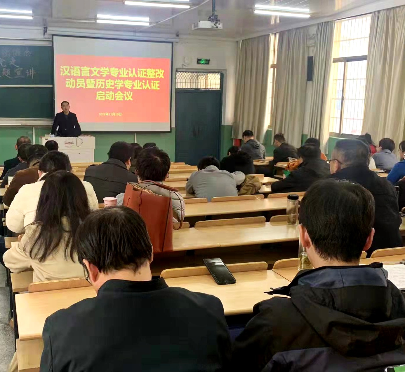 会上,副院长金仁义向全体教师通报了本次汉语言文学师范专业认证教育部专家组现场考查基本情况,传达了专家组成员就培养目标、毕业要求、课程与教学、合作与实践、师资队伍、支持条件、质量保障、学生发展8个一级指标提出的系列问题和持续改进建议,并就开展历史学专业认证作了具体部署。(撰稿:朱国婧 潘娇 摄影:朱国婧 审核:金仁义)