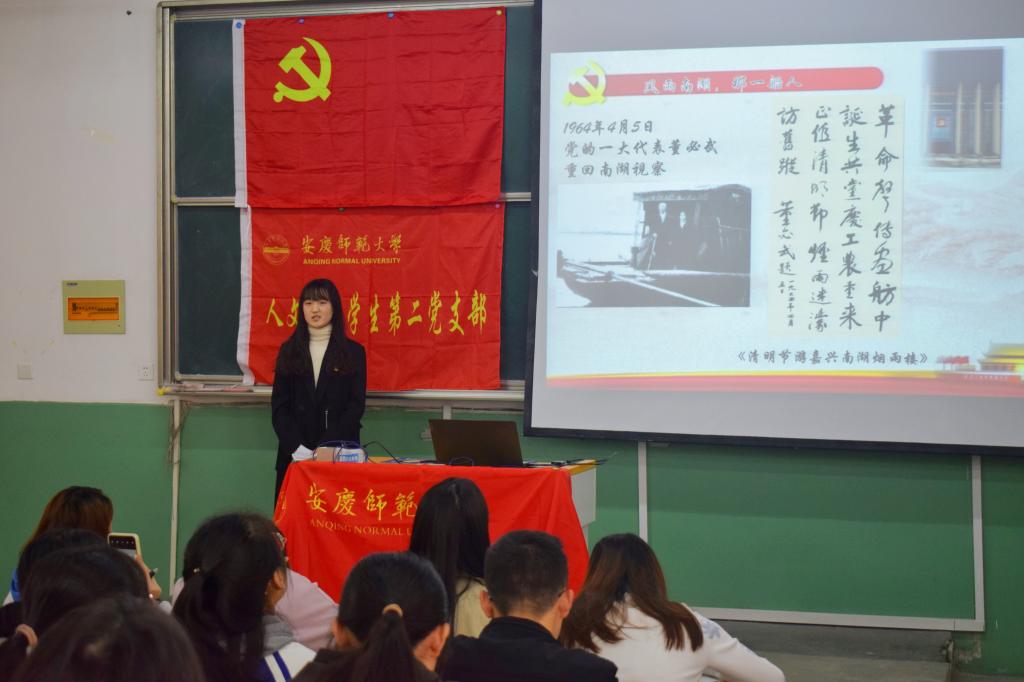 红船劈波行,精神聚人心。宣讲团成员首先带领大家回顾中国革命精神之源——红船精神。中国共产党的诞生故事在宣讲员互动演绎中生动展现,通过播放红船相关的视频,宣讲员盛阳阳、陆悦然详细介绍了中共一大的主要内容、参会人员及会议过程。风好正扬帆,敢向潮头立。盛阳阳从开天辟地、敢为人先的首创精神,坚定理想、百折不挠的奋斗精神和立党为公、忠诚为民的奉献精神三个方面具体阐释红船精神的内涵,同时向大家介绍了红船精神在中国共产党发展过程中的作用,对当今社会的影响以及现在弘扬红船精神的意义。弘扬伟大长征精神,走好今天的长征路。宣讲员李士龙从红军不怕远征难、为有牺牲多壮志、而今迈步从头越等方面为大家具体阐述长征精神的内涵。最后,他将长征精神同中华民族伟大复兴的中国梦联系起来,号召青年学生树立远大理想,不忘初心,走好新时代的长征路。
