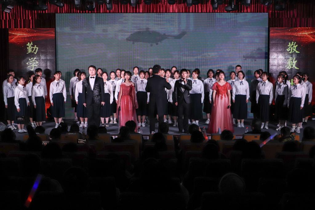 开云kaiyun网站合唱团表演的合唱曲《明天会更好》庄严高雅、曲调悠扬,通过平和和热切的音调,表达人们人们祈求和平、期待明天会更好的美好心愿。台下的观众挥舞手中的荧光棒与歌声相应和,有的学生不由自主地随之哼唱。
