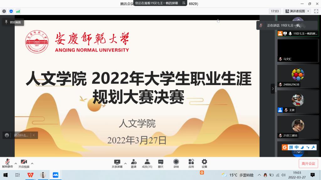 本次大赛分为职业生涯规划书评选和现场答辩两个环节。在职业生涯规划书中,选手们理性分析了自身的职业性格、兴趣、价值观、能力等特质,充分利用相关专业知识对职业世界认真探索,将自我认知与职业认知相结合,对未来的职业生涯进行了详细且合理的规划。在线上答辩环节,选手们利用PPT和简短有力的发言,对自我认识和外部环境进行了全面分析,提出了自己的职业目标、发展路径和行动规划,精确地阐述了自己的观点,表达了自己的职业需求和具体规划。面对紧张的时间计时,他们充分保持冷静,思维敏捷,应答自如,展现出优秀的素质。最后,由评委根据选手职业规划书及线上展示为选手打分。