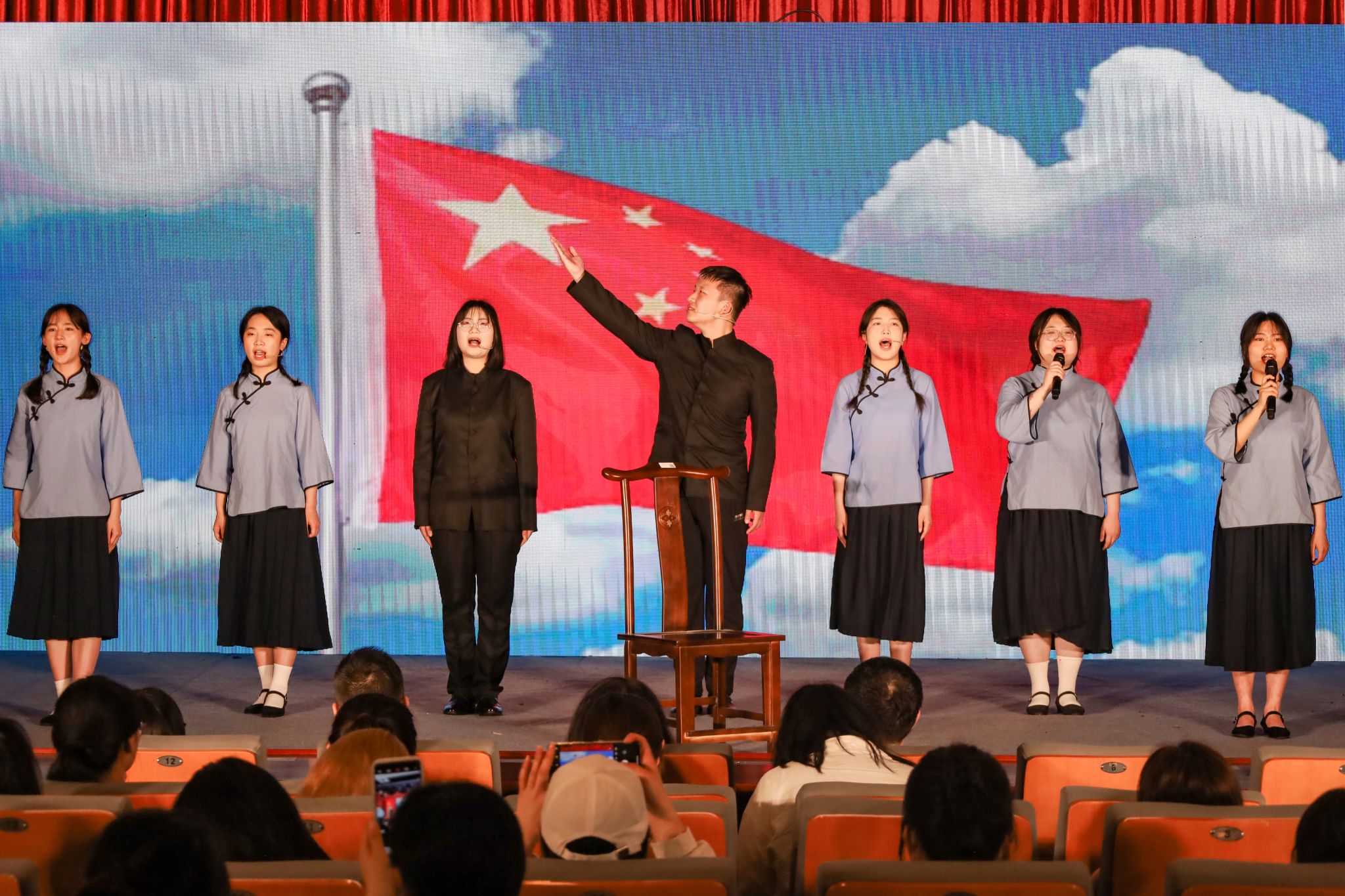 重庆向来有“英雄之城”之称,抗日战争时期,重庆人民将民族利益看得高于一切。开云kaiyun网站朗诵队带来的《雾重庆》,句句泣血,讲述着那段沉重的历史过往。富有年代感的人物服饰,慷慨激昂的诗歌朗诵,引发了现场观众共鸣。表演者之一、历史学专业2021(3)班的黄浩宇表示:“作为青年大学生,我们要增强对红色文化的理解和感悟,学习先辈革命精神。”
