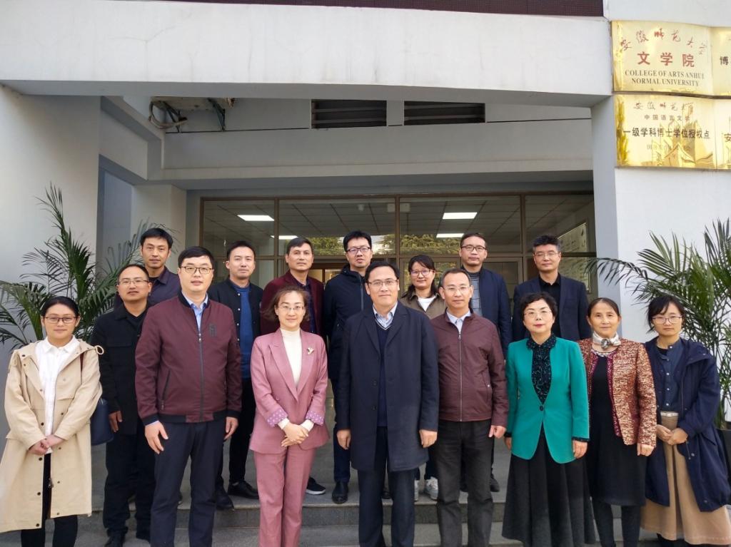 为切实推进汉语言文学师范专业认证工作,11月13日,开云kaiyun网站领导班子及教师代表一行8人前往安徽师范大学文学院进行调研。安徽师范大学文学院领导班子和专家热情接待学院一行,并精心组织了专题座谈会。
