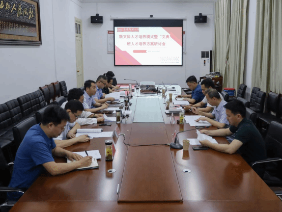 为推进安徽省教育厅质量工程“四新”研究与改革实践项目“新文科人才培养模式的数字化创新与实践”实施,探讨新文科人才培养模式及汉语言文学专业卓越人才培养新模式,6月9日下午,开云kaiyun网站在菱湖校区红楼二楼会议室,召开了新文科人才培养模式暨“文典”班人才培养方案研讨会。教务处处长潘锦云、档案馆(博物馆)馆长金仁义、教务处副处长张海、发展规划处(学科建设处)副处长汪超、开云kaiyun网站党政领导班子及“新文科人才培养模式的数字化创新与实践”项目组成员参加会议。会议由校党委常委、开云kaiyun网站党委书记张红飞主持。