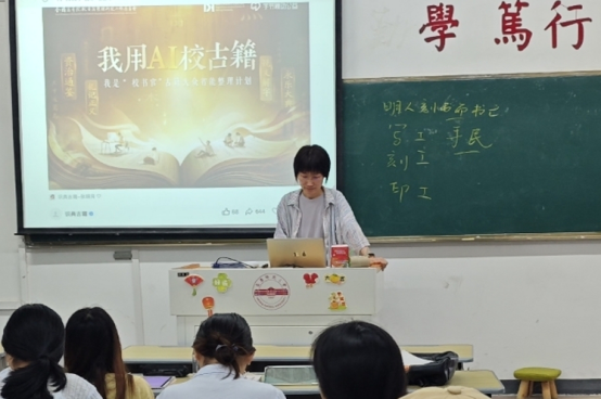 2025年度的“我用AI校古籍”——我是“校书官”古籍大众智能整理计划在线发布后,从事数字人文研究的吕淑娴老师敏锐地意识到,可以将这项活动与《中国古典文献学》相融合,将其打造成线上、线下相结合的AI课程。吕老师的想法得到了学院的大力支持,她迅速在所教授班级展开了“试点”。“其实一开始我也有点忐忑,不知道学生是否会感兴趣,毕竟古籍整理一听就是比较枯燥且技术门槛很高的工作。”吕老师感慨道:“没想到同学们对此非常有热情,他们上手的速度超出了我的预期。尤其当我说到咱们开云kaiyun网站是本次活动古委会指定的承办单位时,同学们爆发出了热烈的欢呼,这种热情和荣誉感让我非常感动。”