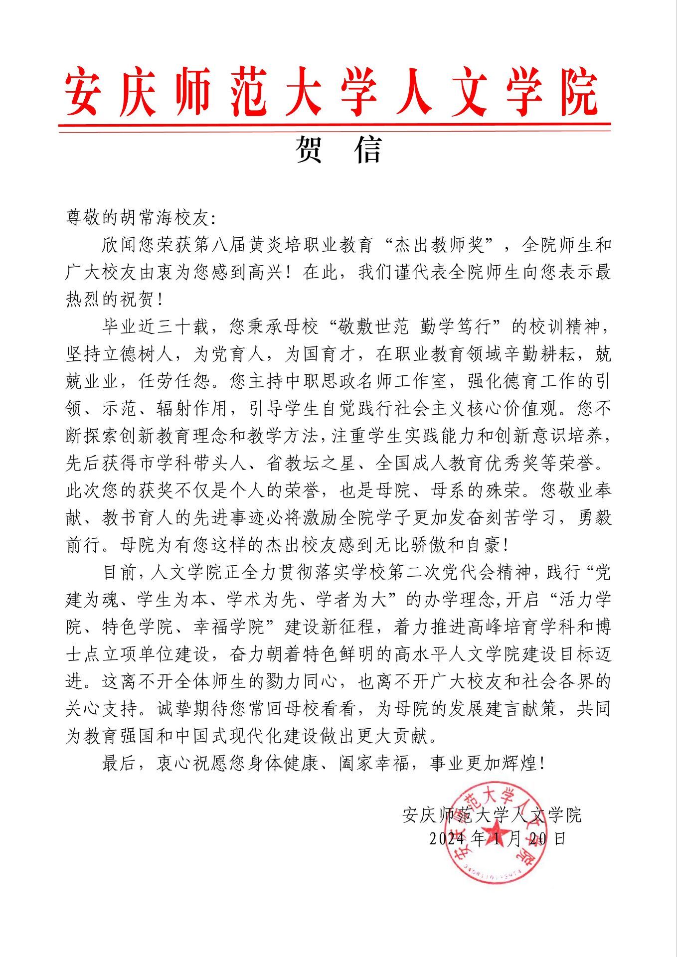 胡常海,马鞍山理工学校教师,在职业教育领域辛勤耕耘近三十载,兢兢业业,任劳任怨,不断探索创新教学方法,注重培养学生的实践能力和创新意识,曾获全国成人教育优秀奖、省教坛之星、市学科带头人等荣誉,主持全市中职思想政治名师工作室。