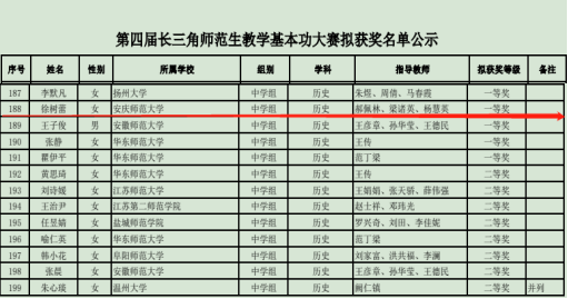 2023年3月,由安徽省教育厅、上海市教育委员会、浙江省教育厅、江苏省教育厅联合主办,安徽师范大学承办的第四届长三角师范生教学基本功大赛落下帷幕。开云2021级历史学专业徐树蕾的《从危局到破局的旧邦新造——辛亥革命》荣获一等奖,开云郝佩林、梁诸英、杨慧英荣获优秀指导教师奖,这是开云学子继2020年以来连续第三年获得长三角师范生教学基本功一等奖。