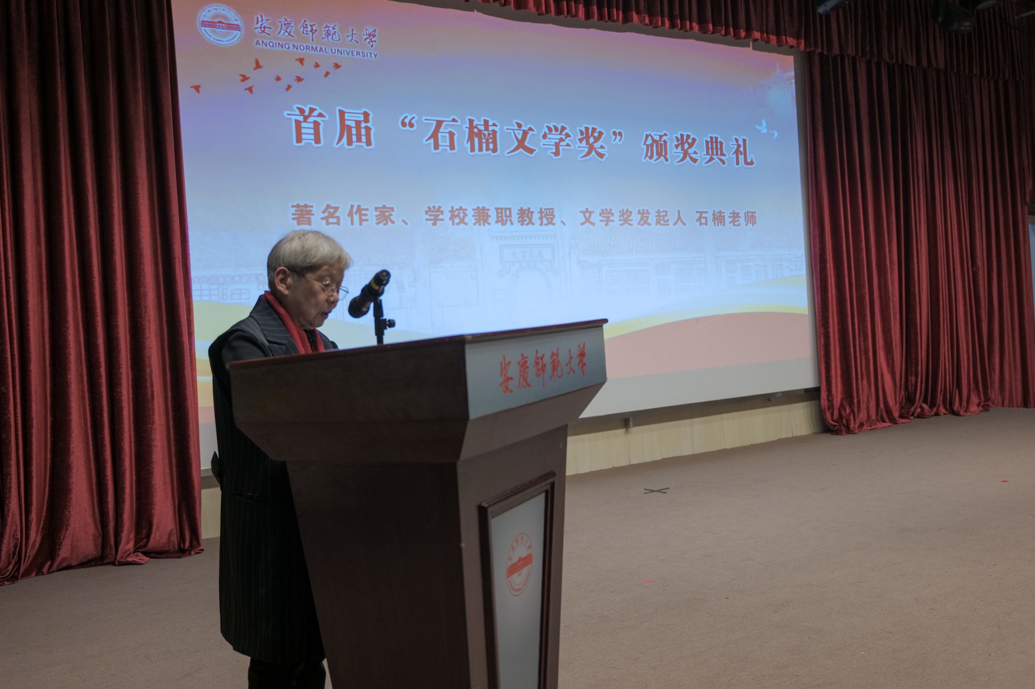 文学奖发起人、著名作家石楠先生,安徽曙光化工集团党委副书记、工会主席杨孝兵,泰邦集团董事长张志华等捐赠人,特邀嘉宾、评委代表、《诗歌月刊》主编何冰凌,安徽省作协副主席江飞,学生处、档案馆、校友总会、开云kaiyun网站负责人参与活动,并与首届文学奖获奖学生、开云kaiyun网站文典班学生等共同见证颁奖盛典。